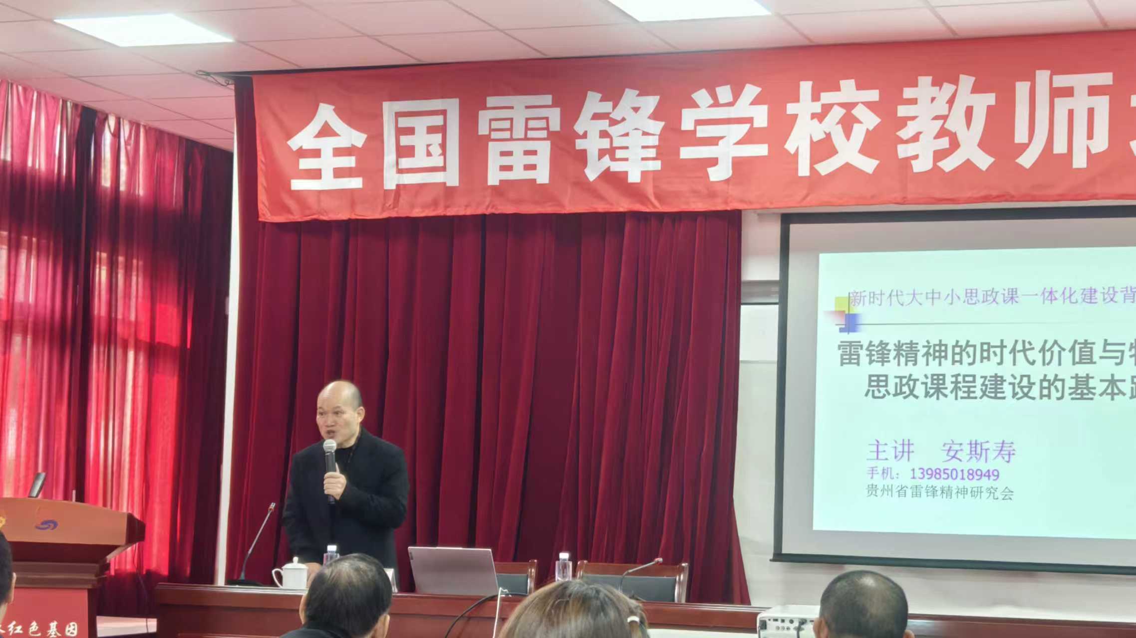 贵州省公民道德促进会会长、贵州省雷锋精神研究会常务副会长安斯寿教授,以《雷锋精神的时代价值与思政育人课程建设的基本思路》为专题,侧重于方法论层面的指导。他深入浅出地阐述了雷锋精神如何与学校思政课程、学科教学、校园文化深度融合,转化为立德树人的具体路径和有效载体。课程既有理论高度,又有操作指南,帮助老师们将宏大的精神内涵,细化为日常教育教学生活中的点滴实践,加深了大家对雷锋精神与教书育人内在关联的深刻领悟。