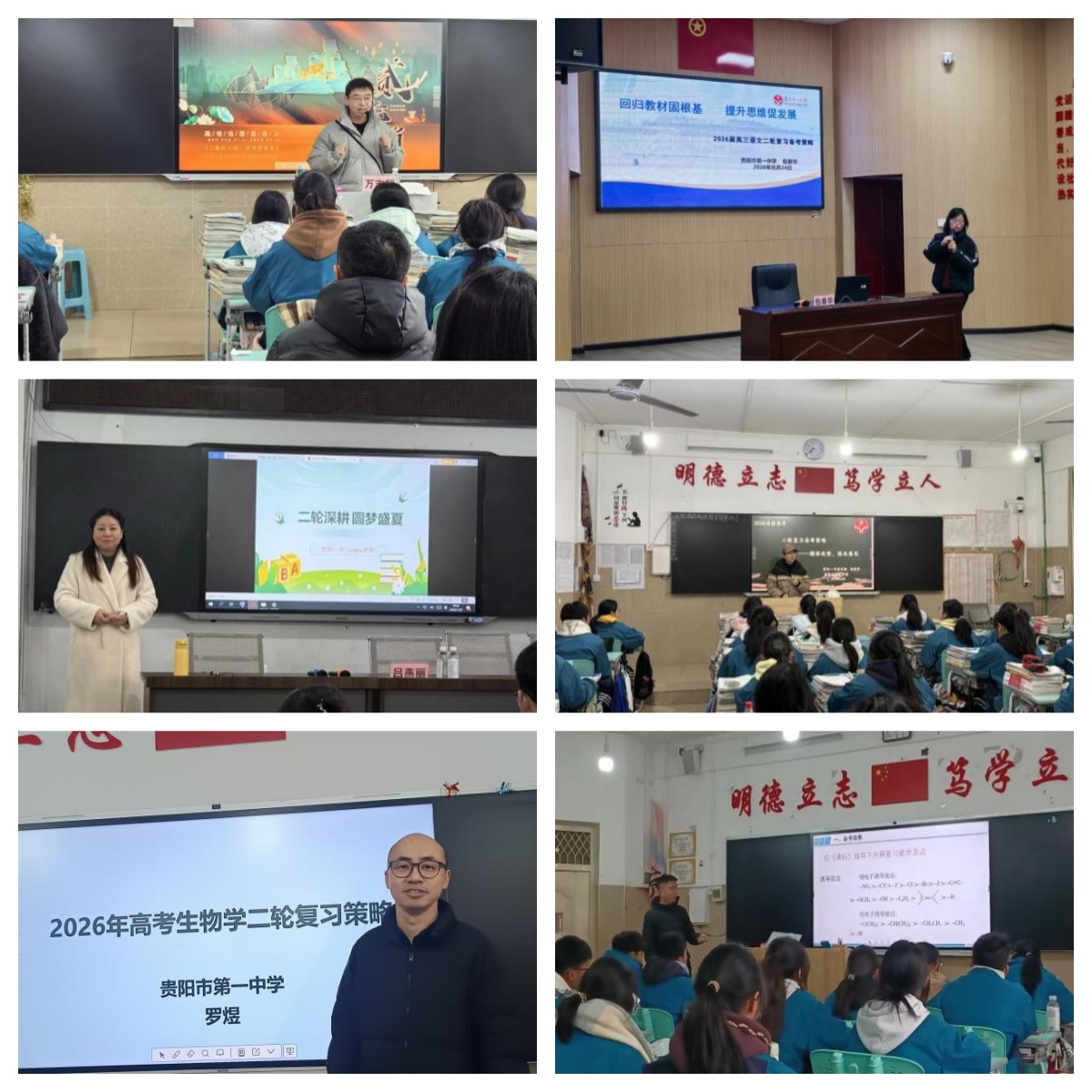 与此同时,高考学科二轮复习备考策略专题讲座同步开展。贵阳一中语文、数学、英语、物理、历史、化学、生物、政治、地理九大学科备课组长分学科、分教室开展专题讲座,惠水民族中学全体高三师生、外区县高中学科备课组长、骨干教师共同参与。讲座紧扣高考改革新要求,深入剖析命题趋势、解读备考重点、传授复习方法,内容精准务实、针对性极强。参会教师积极交流研讨、互学互鉴,拓宽了备考思路;学生们认真记录、潜心钻研,增强了冲刺2026年高考的信心与底气。